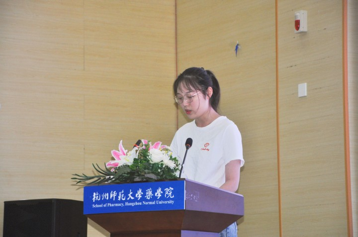 最后,21级研究生新生代表杨笑蓉发言,她鼓励同学们在科研路上保持求真务实的态度,并祝福同学们在杭师大能有所收获。