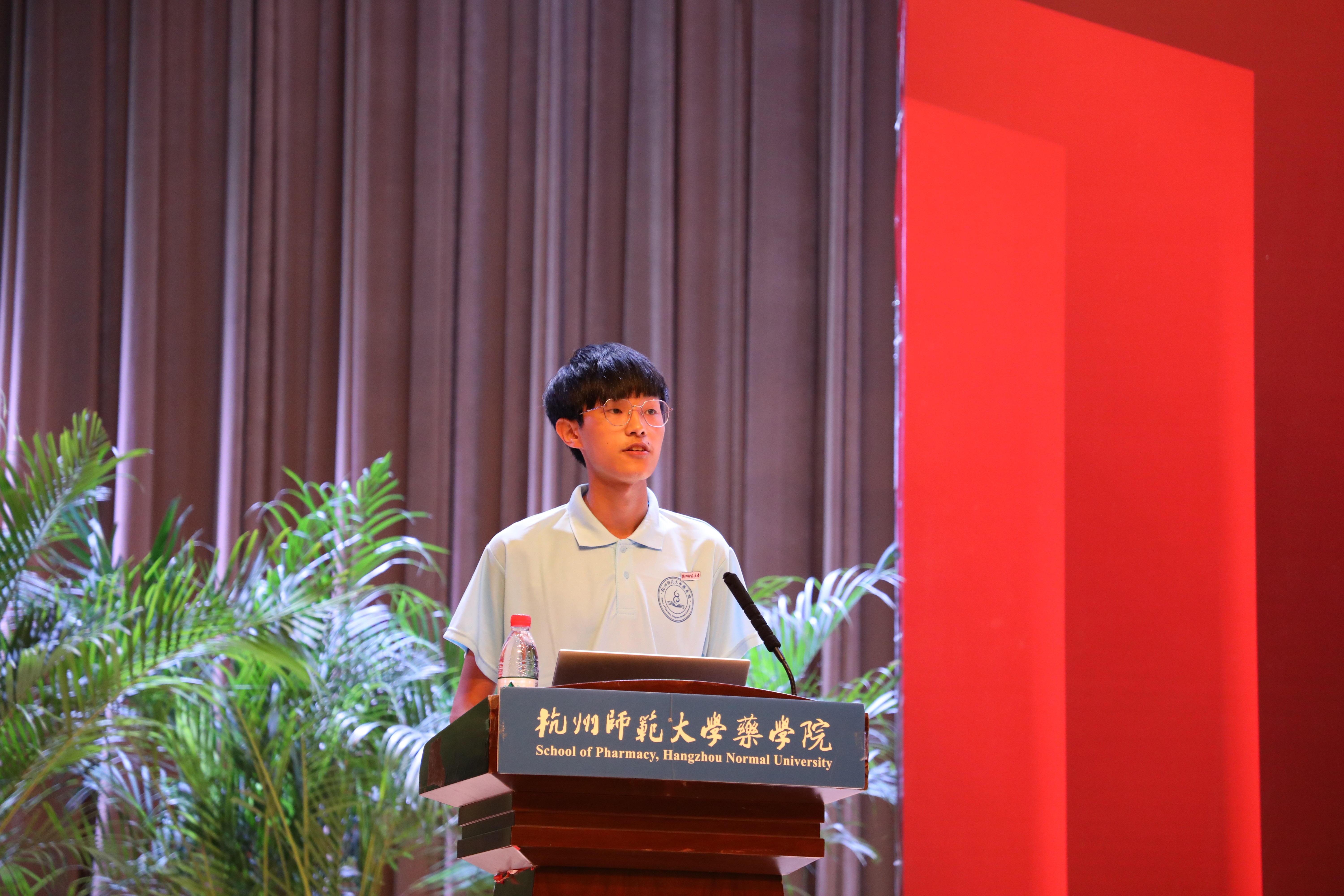 之后2021级硕士研究新生杨瑞同学带来了他的发言。他劝诫同学们时刻谨记“勤、慎、诚、恕”“博、雅、精、进”的校训,约束自己,为药学的明天而努力。