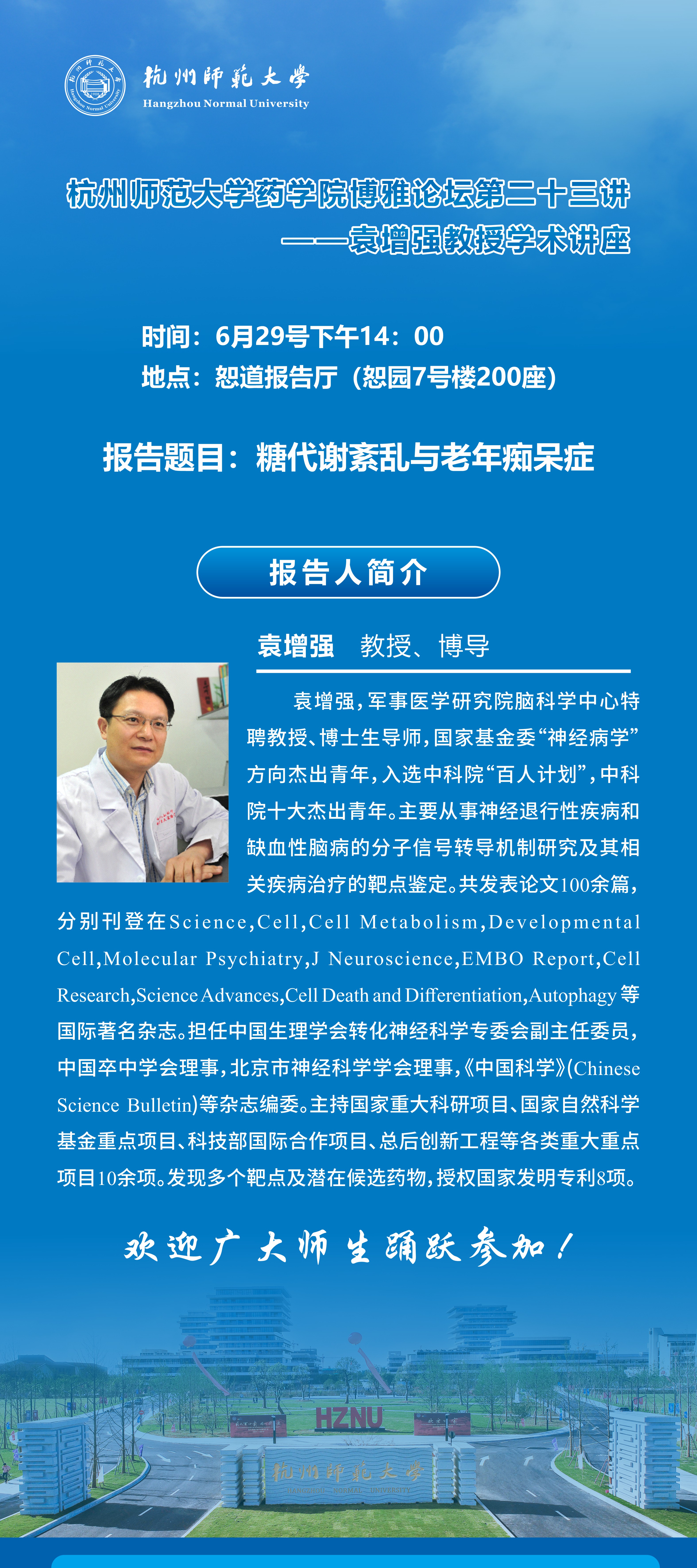 袁增强教授莅临杭州师范大学药学院博雅论坛学术讲座