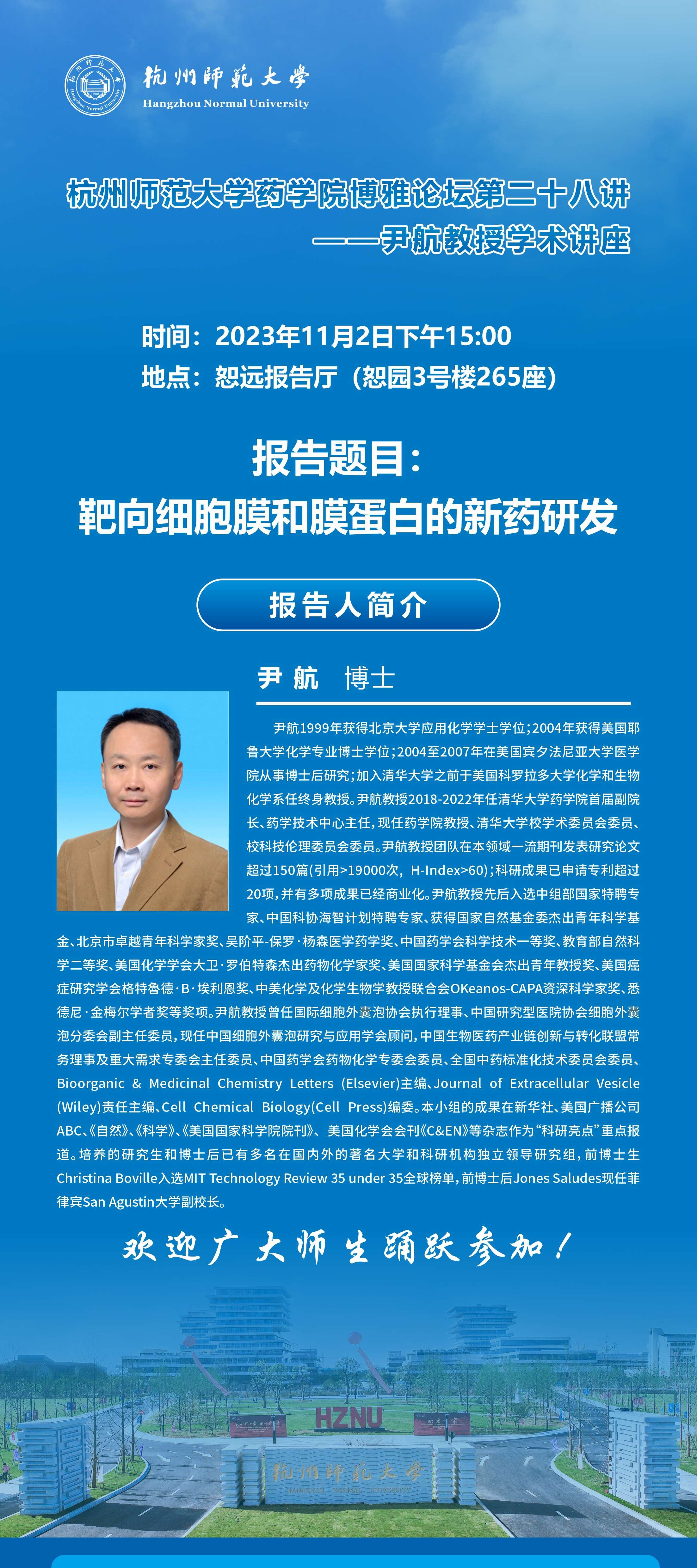 杭州师范大学药学院博雅论坛第二十八讲——尹航教授学术讲座