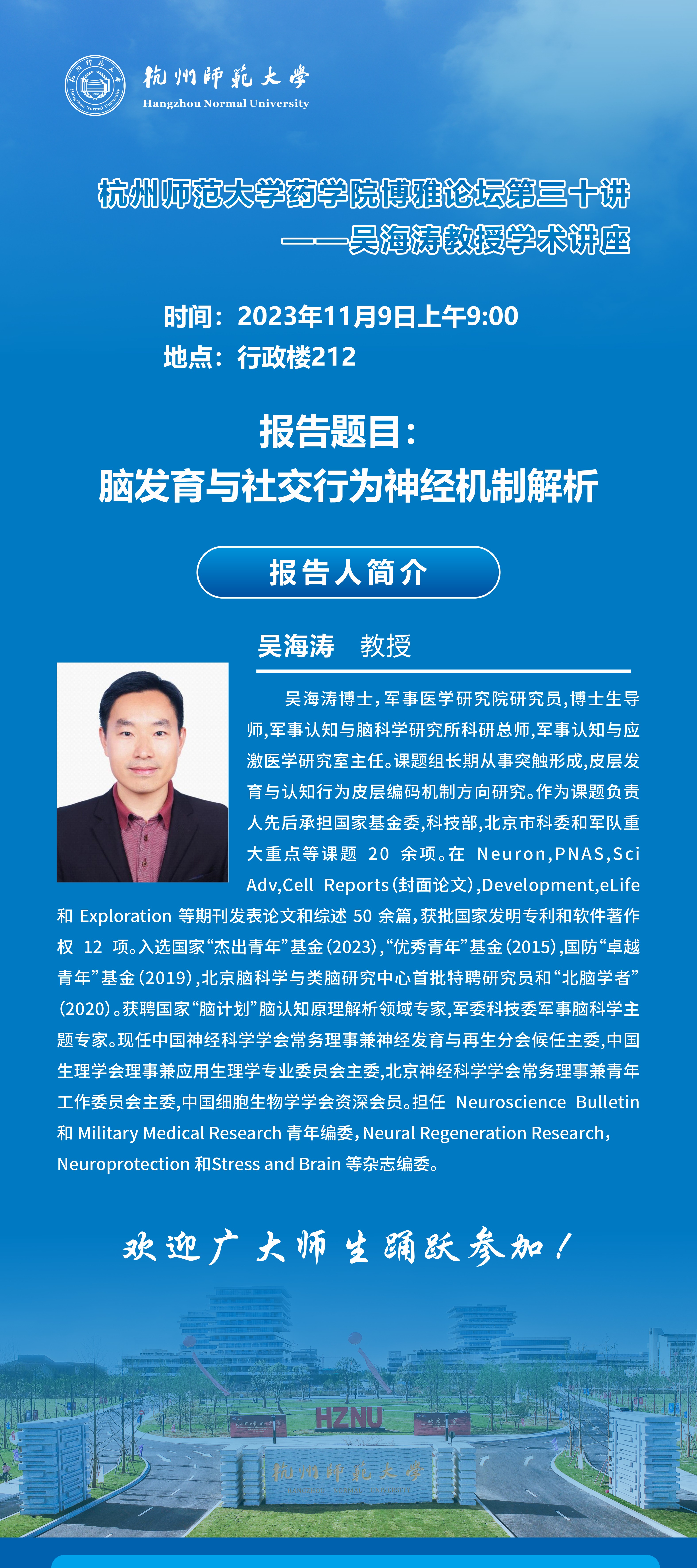 杭州师范大学药学院博雅论坛第三十讲——吴海涛教授学术讲座
