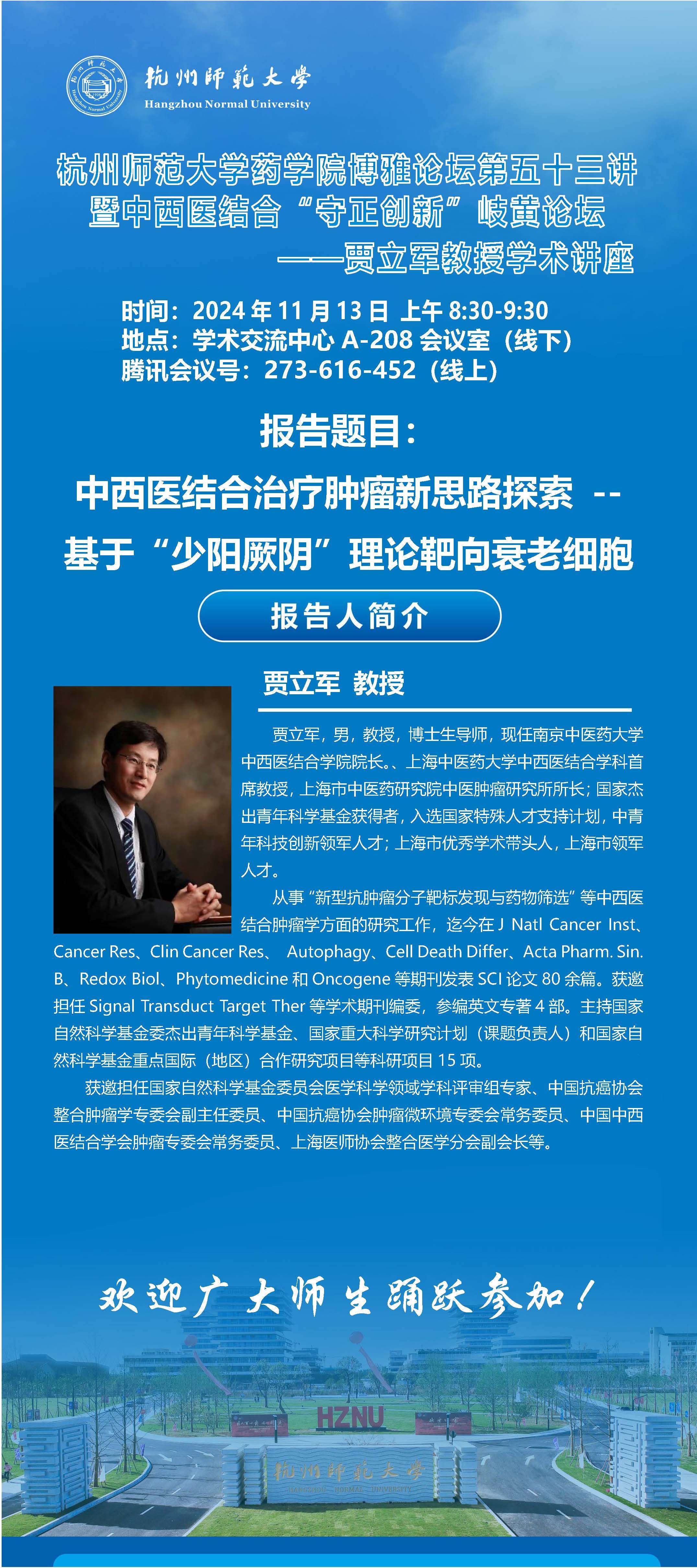 杭州师范大学药学院博雅论坛第五十三讲暨中西医结合“守正创新”岐黄论坛——贾立军教授学术讲座