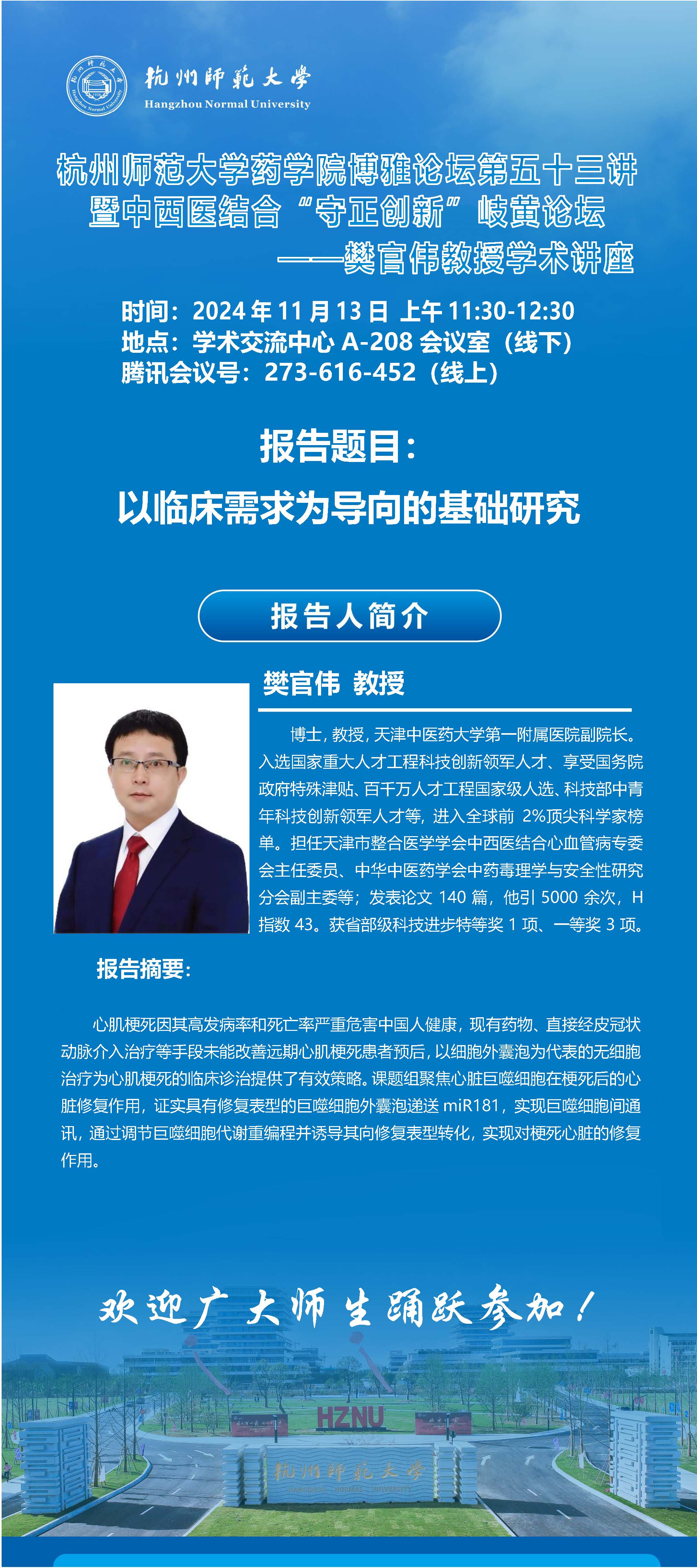 杭州师范大学药学院博雅论坛第五十三讲暨中西医结合“守正创新”岐黄论坛——樊官伟教授学术讲座