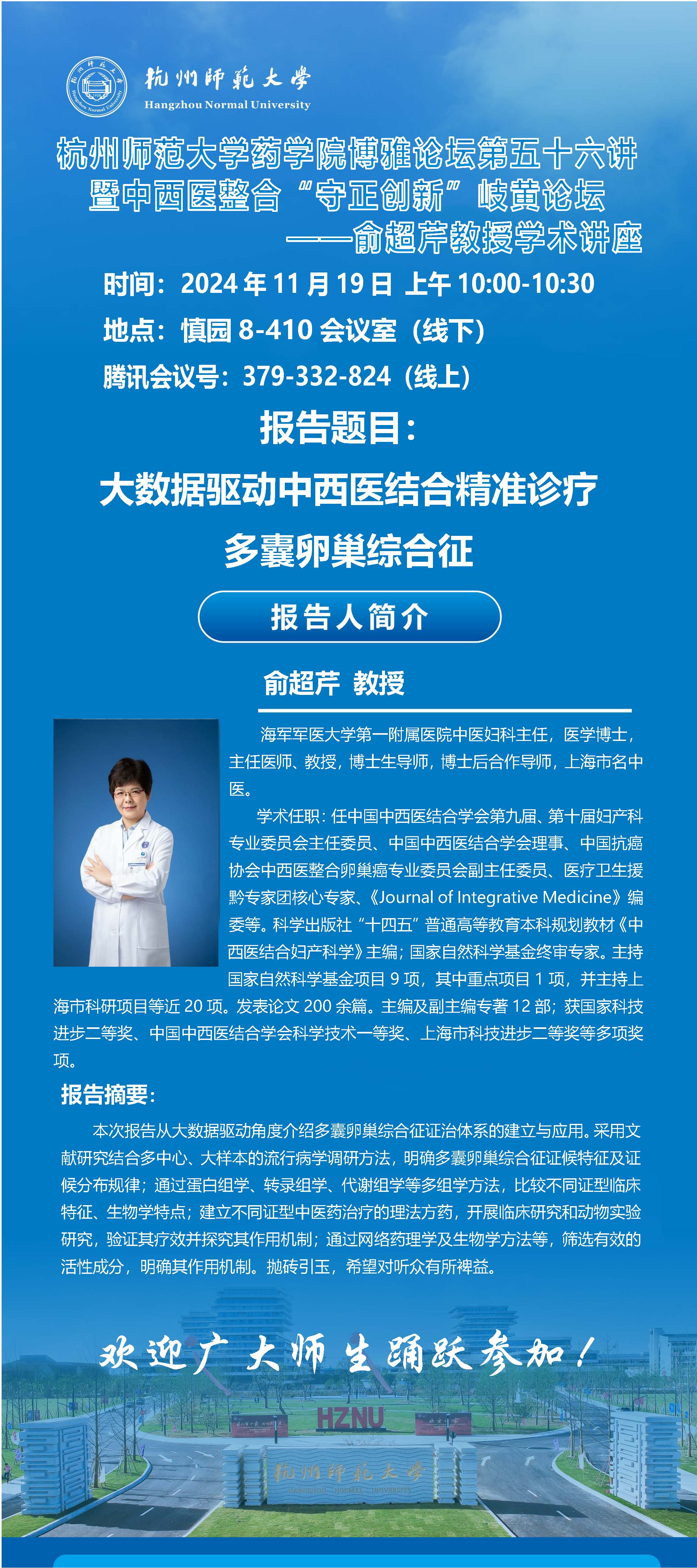 杭州师范大学药学院博雅论坛第五十六讲暨中西医整合“守正创新”岐黄论坛——俞超芹教授学术讲座