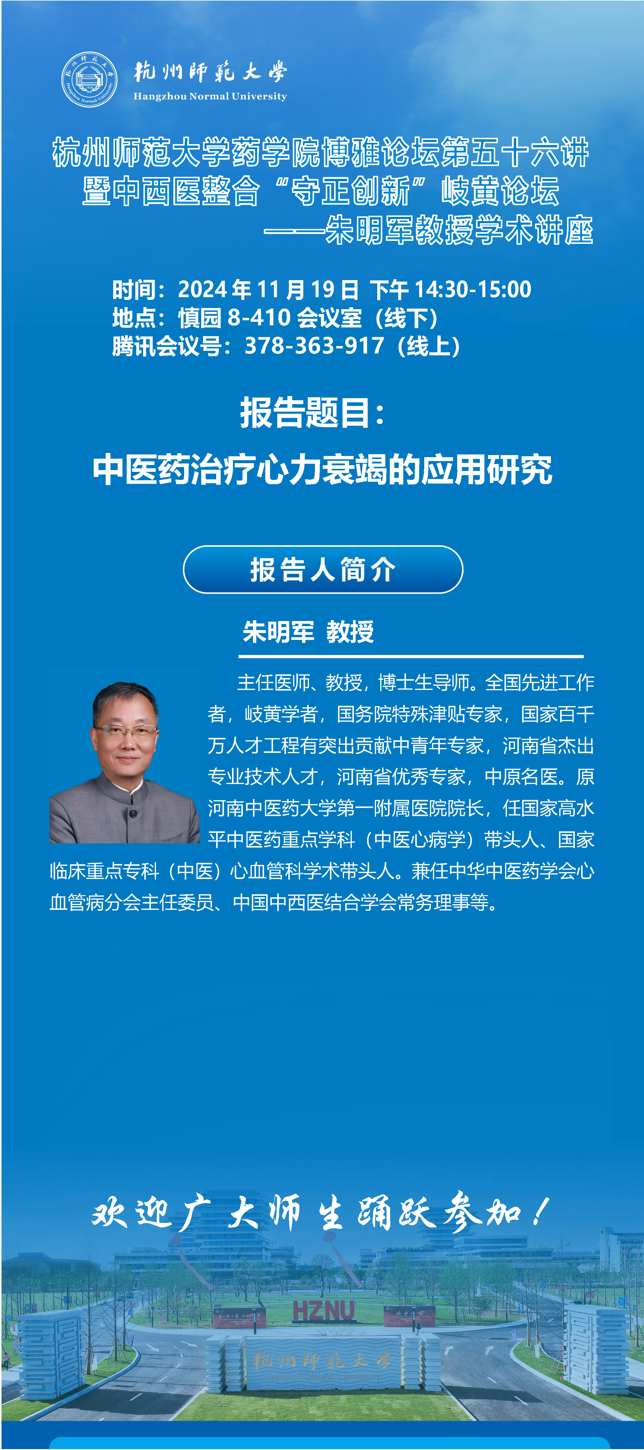 杭州师范大学药学院博雅论坛第五十六讲暨中西医整合“守正创新”岐黄论坛——朱明军教授学术讲座