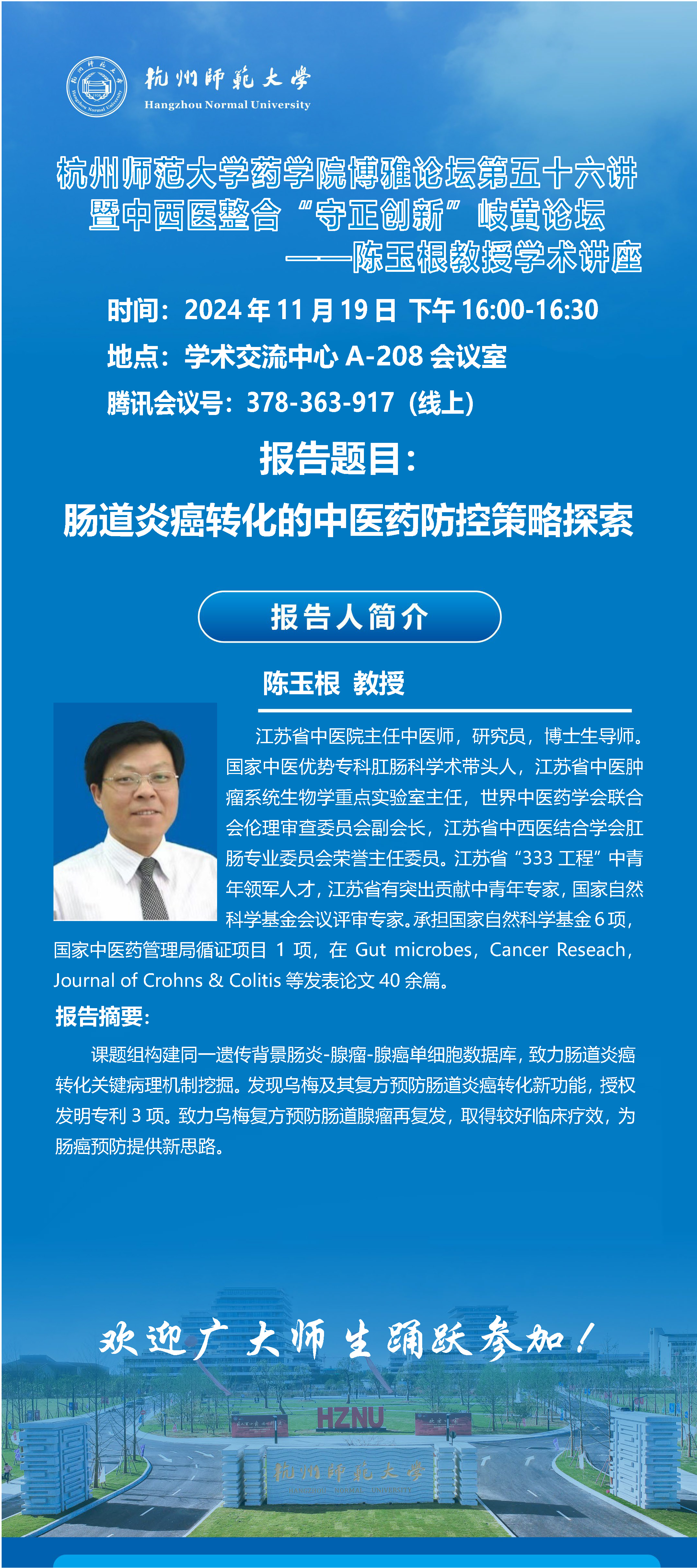 杭州师范大学药学院博雅论坛第五十六讲暨中西医整合“守正创新”岐黄论坛——陈玉根教授学术讲座