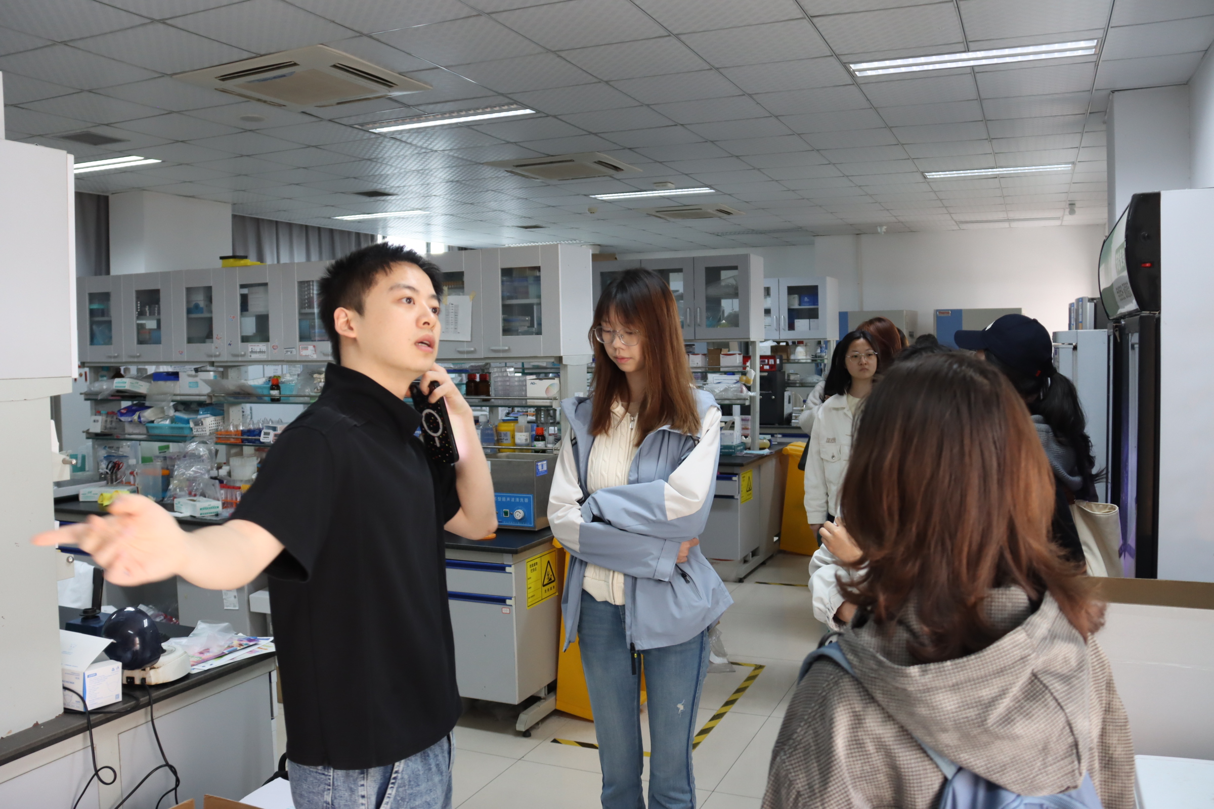 师说讲堂结束后,同学们在辅导员与新生学长的带领下有序走进各实验室,开启参观之旅。新生学长结合实验室实际,详细介绍了各实验室的研究方向和仪器设备功能,让大家真切体会到科研工作的严谨性与创新性;同时结合自身科研经历分享心得,鼓励同学们勇于尝试、敢于探索,在实践中锤炼动手能力与团队协作精神,期待大家主动走进实验室,找到契合自身的研究方向。