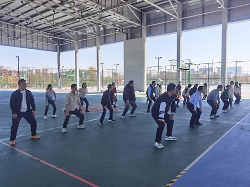 12月8日中午,药学院老师们热情高涨,提前聚集到东二门风雨操场等待,经过彭雨恬教练对每一个动作的剖析讲解,老师们跟随练习,老师们时而柔和缓慢,时而上下翻飞,体悟了八段锦的魅力,共同享受运动的乐趣。活动最后,八段锦推广训练营学员们合影留念,学院赵飞书记为民体彭雨恬教练赠送纪念品。