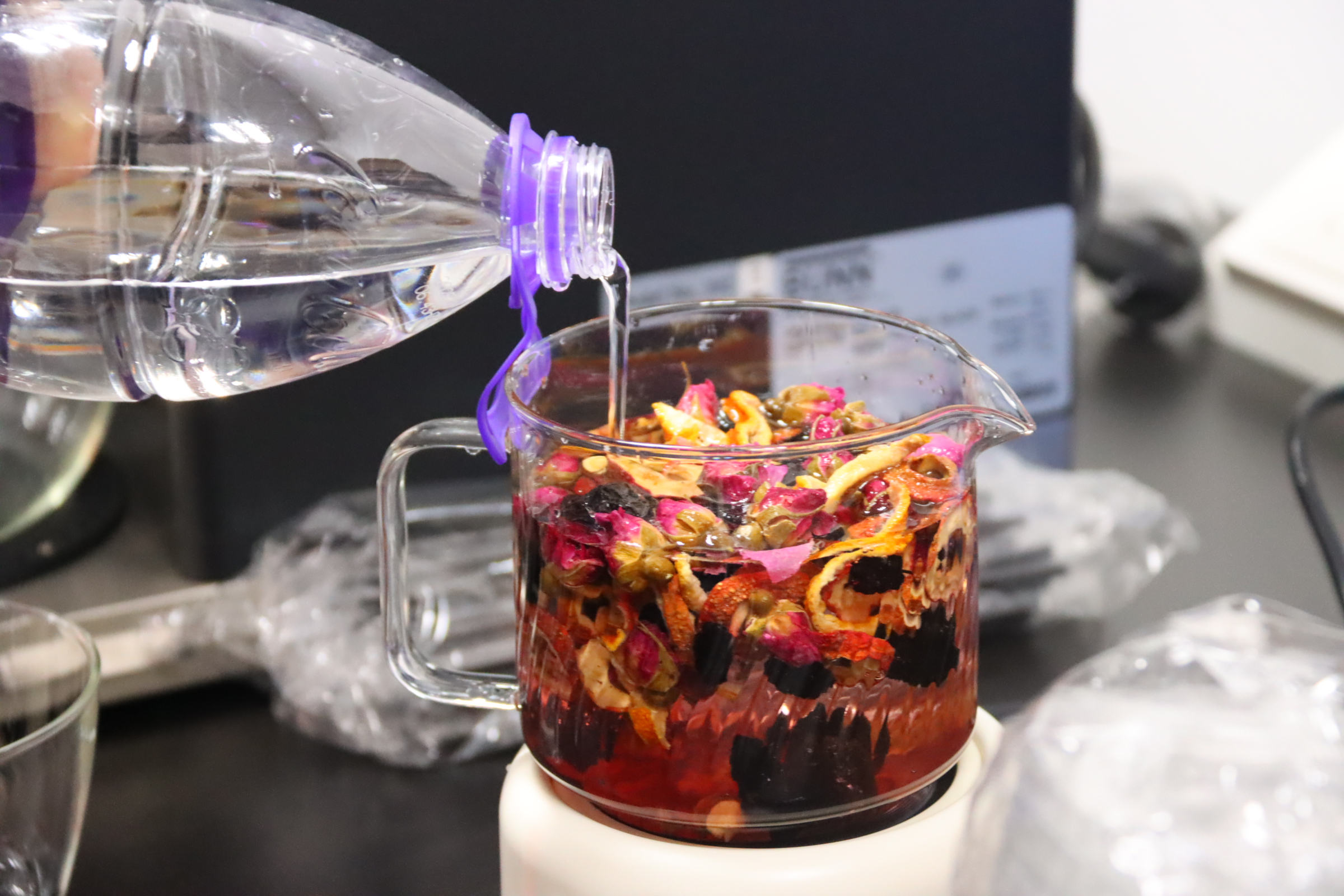 活动现场,同学们小心翼翼地称取陈皮、乌梅、甘草等中药材,按照 “先置药材、后文火慢煮” 的古法工序,大家将备好的食材逐一放入锅中,袅袅茶香氤氲着的是传承文化的初心。