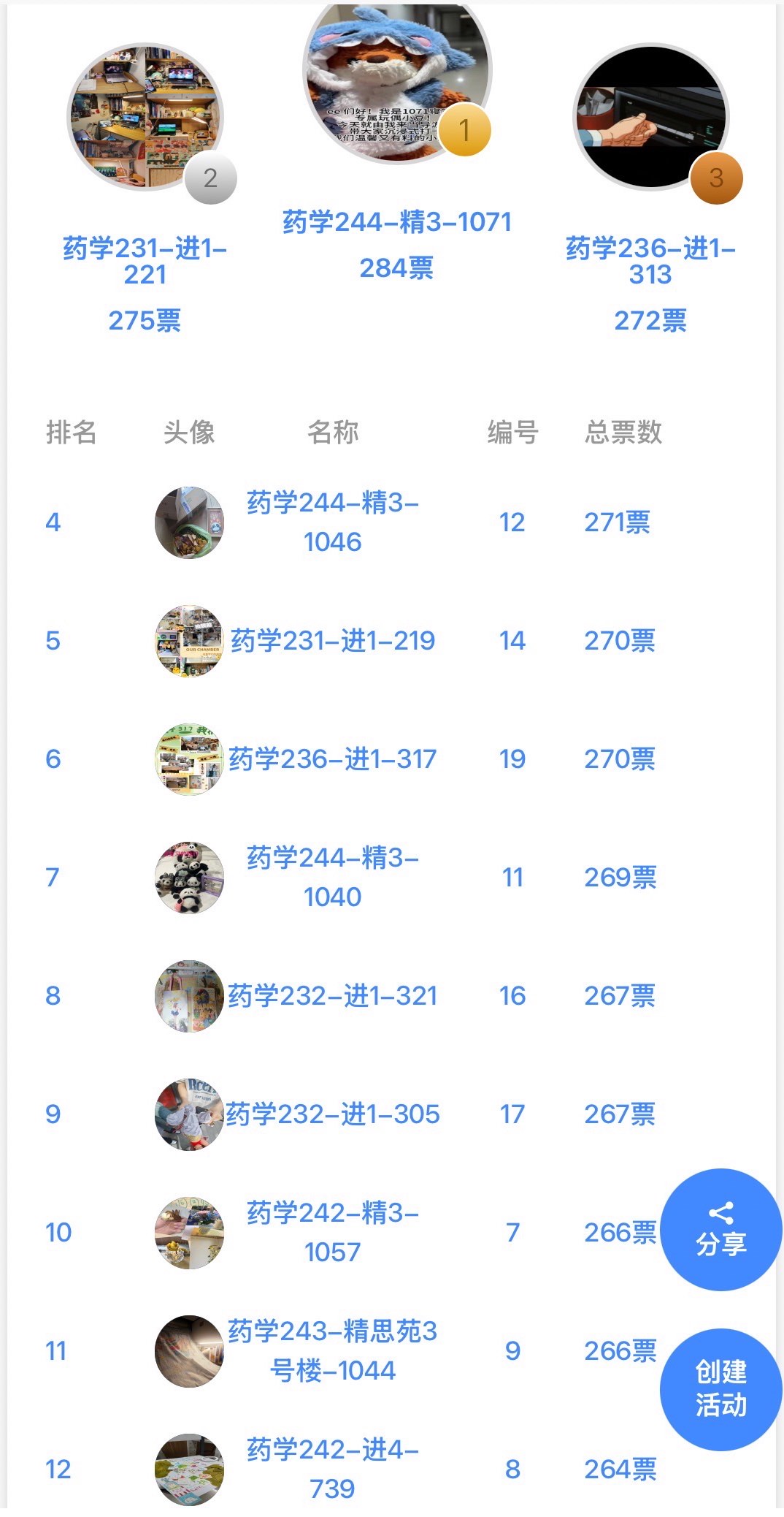 经过线上公开投票评选,大赛最终决出一等奖:药学244-精3-1071、药学231-进1-221;二等奖:药学236-进1-313、药学244-精3-1046、药学231-进1-219、药学236-进1-317;三等奖:药学244-精3-1040、药学232-进1-321、药学232-进1-305、药学242-精3-1057、药学243-精3-1044、药学242-进4-739。